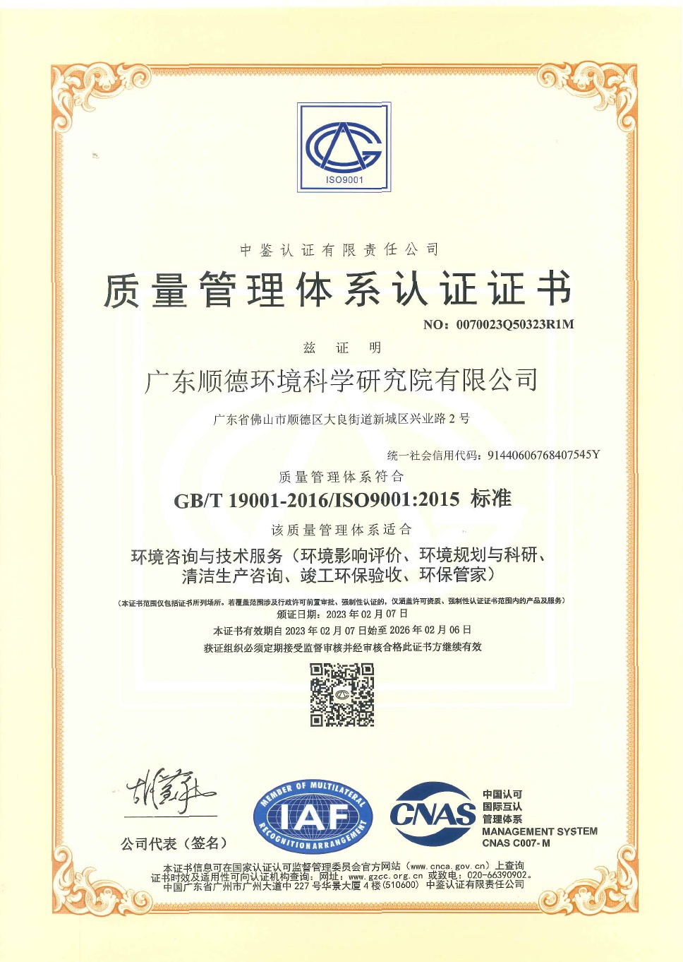 證書編號:粵環監證第2017003號