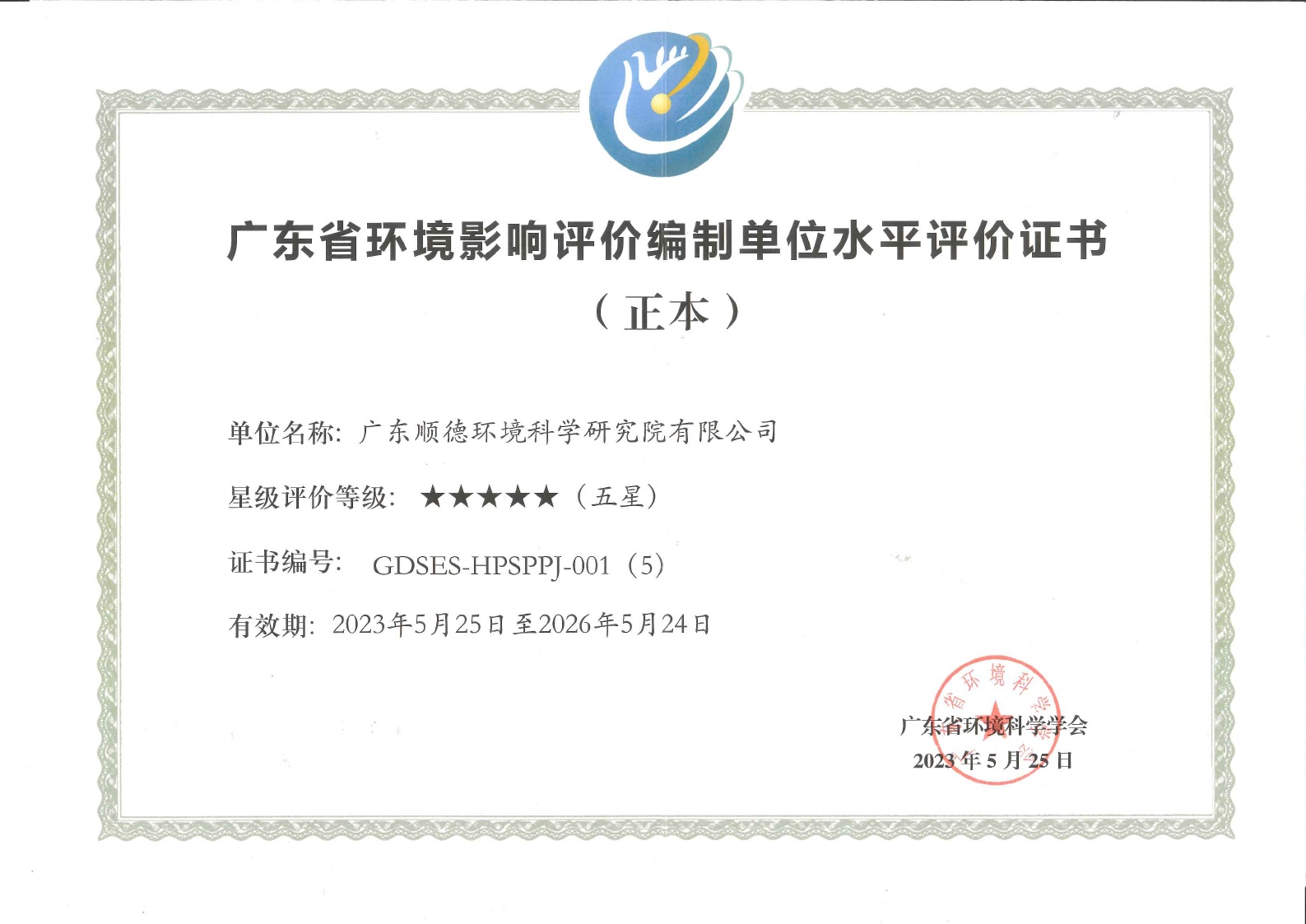• 廣東省環境影響評價編制單位水平評價五星單位證書